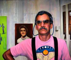 Greg in studio with pink shirt